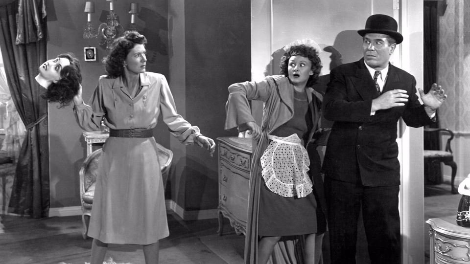 Between scenes, our corpse narrator pipes up with voice-overs that stop the film cold—literally. The picture freezes mid-music cue for her one-line interjections. When it resumes, the score blasts back at ear-splitting volume. Somebody thought this was a good idea.