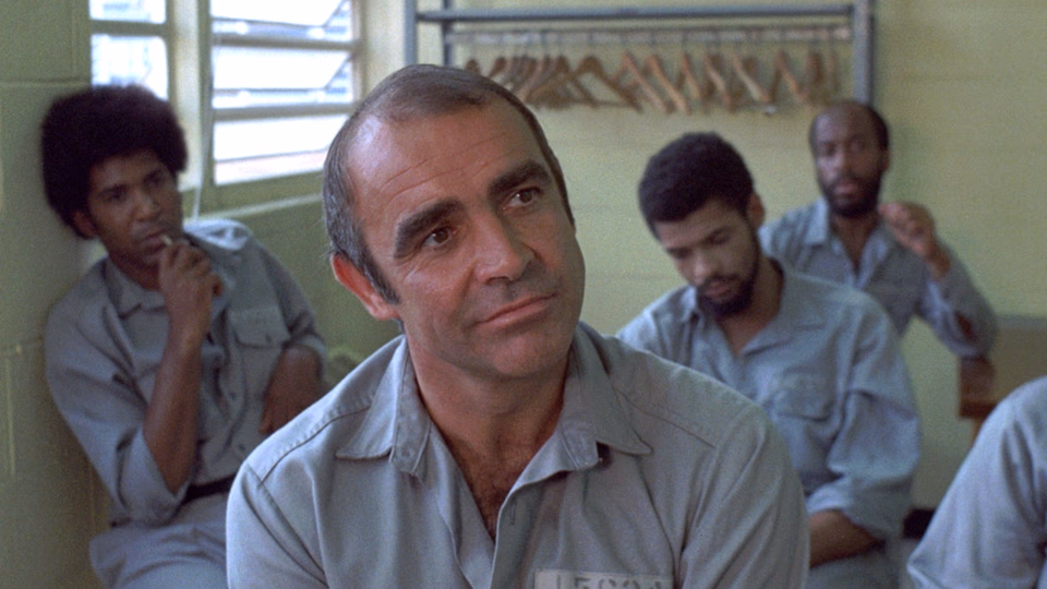 Connery would wear a toupee for that year’s James Bond entry, Diamonds are Forever, but not here. The result has him look older, less virile. Fitting a man just out of prison. It complements his character’s harder edge, providing a constant reminder of his loss—ten years of his prime.