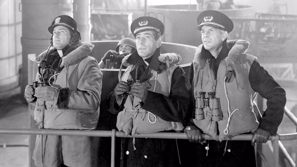 The special effects are spectacular, especially the opening submarine attack. Seeing Humphrey Bogart surrounded by fire and racing around a sinking ship that’s breaking apart at the seams is impressive, camera trick or not, and serves to heighten the film’s sense of realism.