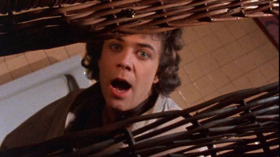 Frank Henenlotter’s debut. In New York City, Duane carries his mutant conjoined twin Belial around in a wicker basket as the pair hunt down the doctors who separated them.