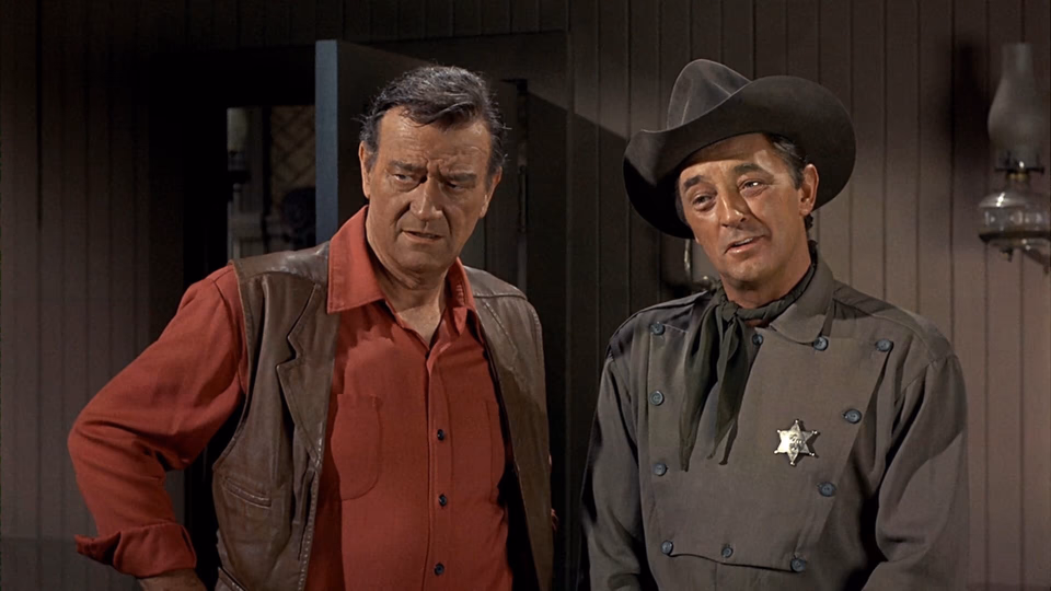 The film starts earlier in the story than Rio Bravo, with Wayne and Robert Mitchum’s characters meeting before Mitchum hits the bottle. Their interactions here are the best, and help amplify Mitchum’s fall later in the film. A nice change.