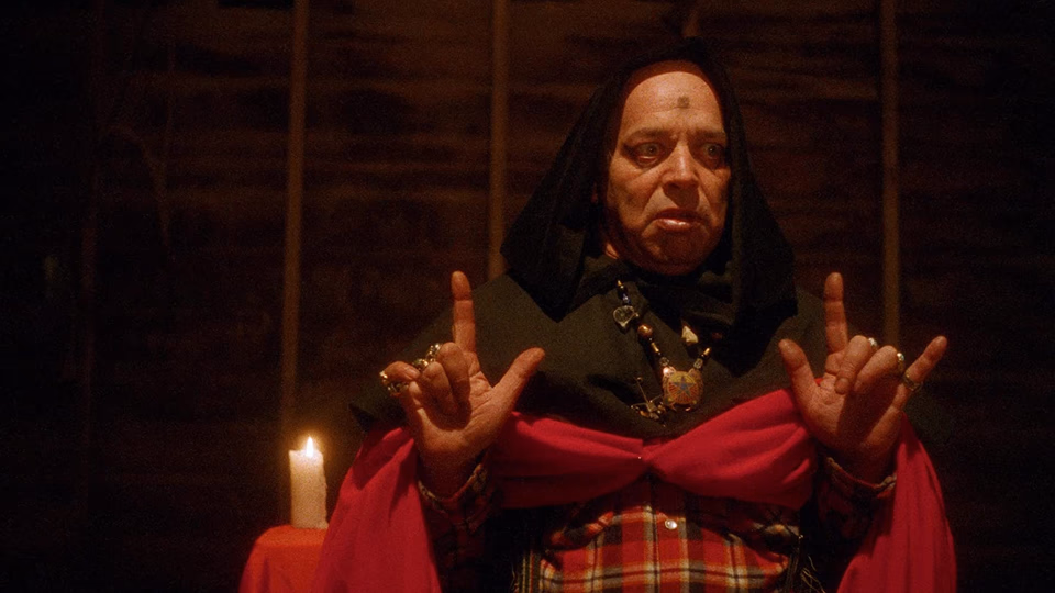 So-bad-it’s-good schlock sees Hy Pyke masterminding a satanic cult in rural California. He’s out to initiate his incestuous son on Halloween night. ’80s fashions, nice location photography, and Pyke’s grand-camp performance buoy the wooden acting and specious plotting. Not for everyone, but lots of fun.