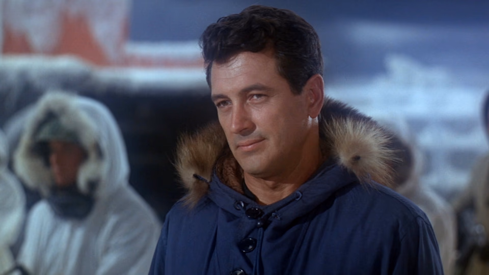 The commander (Rock Hudson) of an American sub takes on a British spy (Patrick McGoohan) and a Russian defector (Ernest Borgnine) and races the Soviets to a weather station at the North Pole.