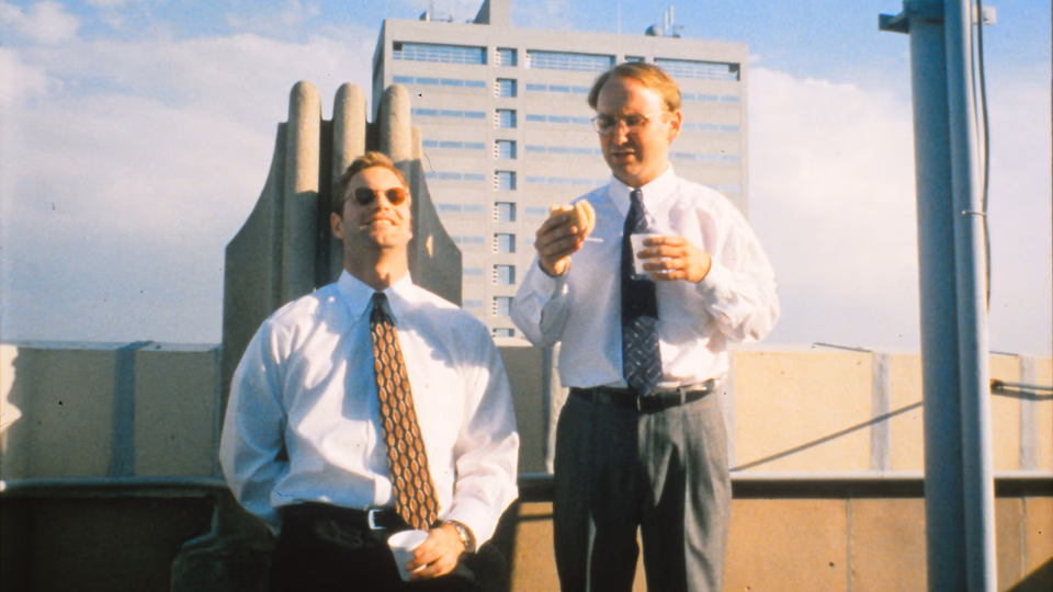 Howard, played by Matt Malloy, is smaller, with a slight paunch, receding hairline, and nervous manner. He proves reluctant at first, but soon agrees to Chad’s plan. If Chad is the stereotypical alpha male, then Howard is the entitled troll. He apes alpha behavior, taking a hard line with a caller when coworkers are within earshot, but softens once his office door closes and we discover he’s talking to his mother. He avoids conflict and stews in private, reeking of neediness and looking for answers from everyone but himself.