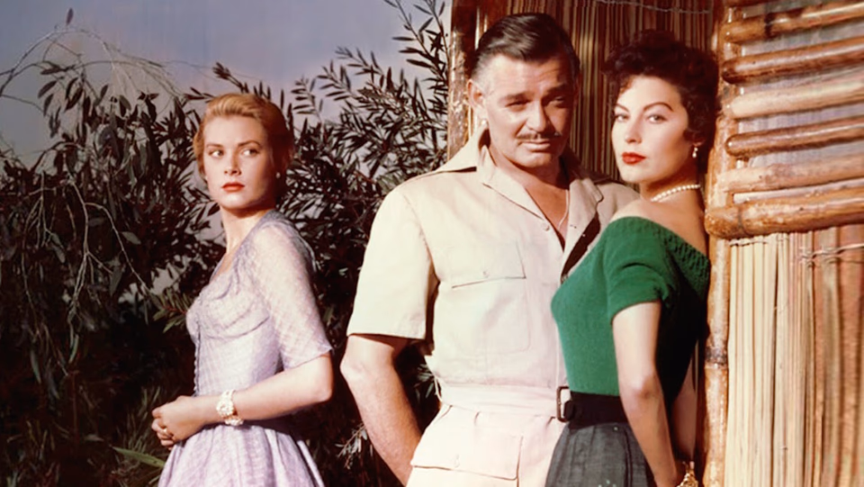 A married anthropologist (Grace Kelly) and a chorus girl (Ava Gardner) fight over a hunter (Clark Gable) in Africa.