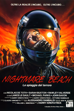 On the plus side, Nightmare Beach maximizes its Daytona Beach photography. I had no idea roads and parking lots bisect the beaches, but an early shot shows masses of spring breakers lounging in the sand with rows of parked cars between them and the ocean. A later shot shows a procession of cars cruising down the beach, again bisecting the sunbathers and the surf.
