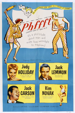 Jack Lemmon’s second feature re-teams him with Judy Holliday. They play a couple who divorce after eight years of marriage then can’t help crossing paths. It’s lighthearted and predictable, but fun. Seeing a mustachioed Lemmon dance the mambo with comedic gusto while Holliday matches him in vigor proved a highlight. Kim Novak plays a Monroesque ditzy blonde who takes a liking to Lemmon. Bonus points for the script treating Holliday’s position as a successful woman as matter-of-fact rather than an anomaly.