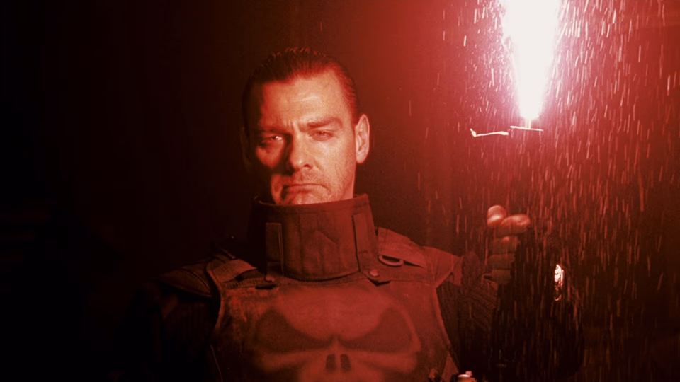 As of this writing, Stevenson’s performance remains the best interpretation of Frank Castle, a.k.a. the Punisher. While other performers before and since have brought pieces, Stevenson delivers the full package. His heavy brow, slicked back hair, weary eyes, and hulking physique combine to portray a man devoid of emotion but capable of great violence. A telling scene comes early when a police officer gets the drop on him, ordering Castle’s hands in the air. Stevenson freezes, then clasps his hands behind his head and turns, towering over the officer by a good six inches. Shaking, the officer lets Castle walk, then punches himself in the face to affect a struggle.
