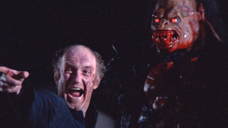 Meanwhile, the local verger, Declan O’Brien, transforms into something of a Renfield for Rex. Ronan Wilmot’s performance as Declan proves the film’s most entertaining aspect. He delivers just the right amount of gravitas given his arc culminates in Rex baptizing him with a firehose stream of urine. A sequence you can see in pristine high-definition on Arrow Player.