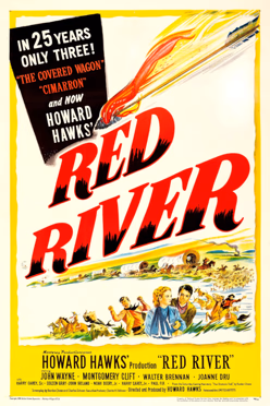 The story follows Dunson, a cattle baron facing financial ruin after the Civil War, as he leads a massive herd north to the Missouri railroads. What begins as an act of salvation becomes a descent into tyranny, as Dunson’s desperation transforms him into a monster. Montgomery Clift, in his film debut, plays Matt Garth, Dunson’s adopted son, whose growing opposition to his father’s methods drives the film’s central conflict.