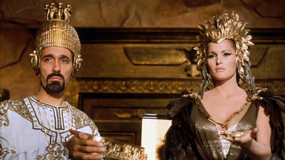Archeologist Cushing and his chums discover a lost city in the desert ruled by an immortal queen, played by Andress.