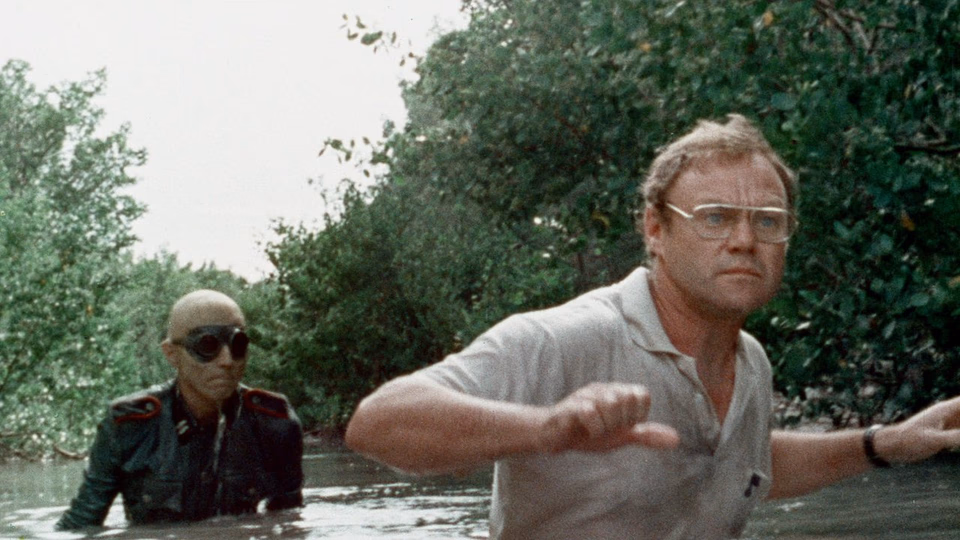 Soon, undead Nazis are picking off the stranded visitors. They get a lot of help from the script. A veteran sailor impales his foot on a sea urchin after tromping barefoot through a murky inland stream. Later, five grown men and women lose a sailboat, their only chance at escape, in knee-deep water. After that, the group scatters and one man decides to flee alone down a waist-deep stream.