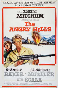 The Angry Hills starts well enough. It’s 1941. Robert Mitchum plays Mike Morrison, an American Correspondent who has just arrived in Greece. The Nazis are preparing to take the country and Mike plans to be on the next plane out. A member of the Greek resistance presents Mike with a list of Nazi collaborators. He urges Mike to take the list to British Intelligence. Mike declines, saying he doesn’t want to get involved. Later, while out with a friend, Mike discovers the list in his jacket. Mike attempts to unload the list to another Greek agent, but Gestapo agents are already on Mike’s tail. They force him to flee through the darkened back streets of Athens. Mike escapes by hitching a ride on a British convoy.
