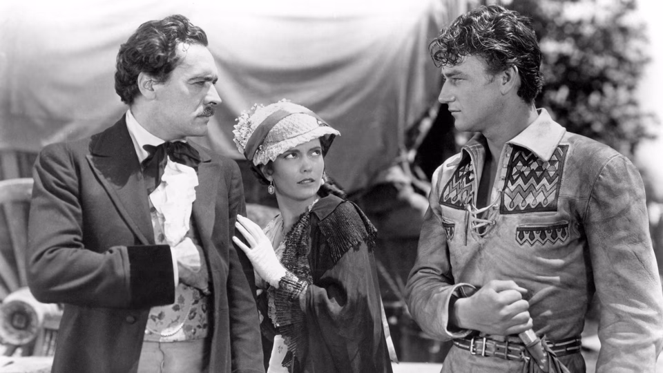 John Wayne’s first starring role. He’s good but raw—on par with the poverty-row oaters he’d headline for the next nine years. Here he plays a trapper leading a wagon train up the Oregon Trail. The script includes the requisite character drama and romantic interest. Disregard them. The production itself proves the real star.