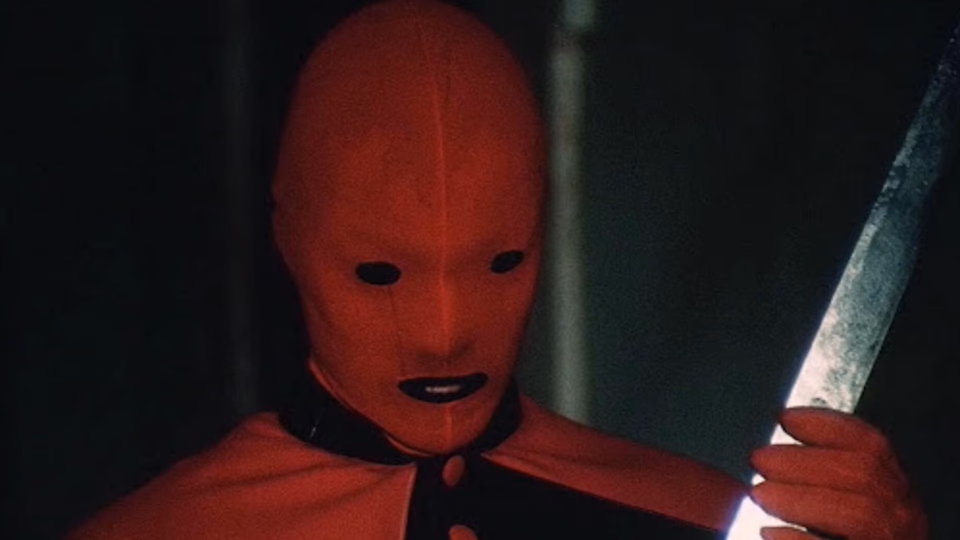 Of course, as I mentioned, we already know what happened to the sister. The opening scenes show a woman exiting the house, getting kidnapped, stripped naked, tortured and murdered by a figure clad in inquisitor red wearing a matching, solid-red luchador-style mask. As the credits conclude, we see her body thrown over a cliff.