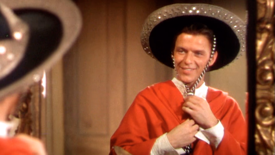The plot sees Frank Sinatra play a timid man from Boston who travels west upon learning of his father’s death, only to discover he must assume his father’s secret identity as “The Kissing Bandit.”
