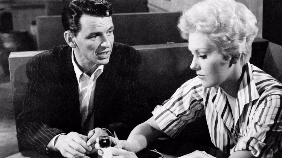 Frank Sinatra acts his heart out as the lead, Frankie Machine, a recovering heroin addict returning from a stint in rehab after getting caught dealing an illegal card game. You’ll never see Sinatra try harder than he does here and, at times, he works in the role, but more often than not, you can’t shake the feeling that you’re watching a performance, an impression of an addict, rather than a real addict.