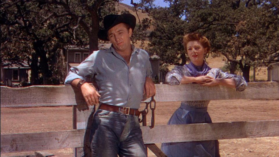 Calhern plays Miles’ character’s grandfather, a former pioneer who can’t quite stop reliving his glory days. It’s a fun, grounded, yet touching character that’s easily the best written of the film. Michum’s character is less so. On paper, he’s a pretty thin plot device, but Mitchum’s laconic ease and cool charm give him a tremendous presence.
