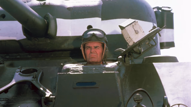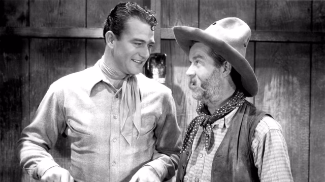 But that tent-pole set-piece—a massive gunfight that sees the pioneers circling the wagons and Wayne racing to wire the cavalry—drags, showing the same recycled footage multiple times. Even worse, the footage doesn’t match the film’s comic-adventure tone. We see pioneers take bullets, fall down in agony, wagons aflame, and folks scurrying in panic as the injured lie writhing on the ground. Meanwhile, Wayne returns and takes time to change his shirt before rejoining the fighting.