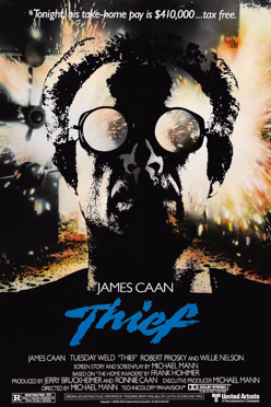 Caan plays Frank, a Chicago-based professional safe cracker looking to retire and start a family with his new girlfriend, played by Weld. Needing one last big score to secure his financial future, Frank agrees to go to work for Leo, a powerful crime boss, who sets up a high-dollar diamond heist in LA. Frank and his crew take down the score, but when Leo reneges on their deal it sets up a violent confrontation between Frank and Leo’s crew. Michael Mann’s first film is effective, stylish thriller peppered with great performances and a very satisfying third act. It’s a slicker–but no less resonant–version of the kind of movie Sam Peckinpah might have made with Steve McQueen.