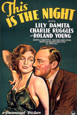 This fits the plot. Grant plays a world-class Javelin thrower, who returns home to find his wife, played by Thelma Todd, in a compromising situation with Roland Young. To assuage Grant’s concerns, Young pretends to be married and hires actress Lili Damita to play the part when both couples travel to Venice.