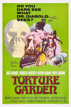 There is one reason, and one reason alone, to watch Torture Garden: to see Peter Cushing and Jack Palance as a pair of obsessed Edgar Allan Poe collectors in a segment written by Robert Bloch and directed by Freddie Francis. Never mind that Palance isn’t really right for the part, for fans of 60s horror films, this is a combination too good to pass up.